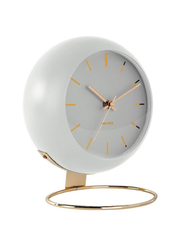 שעון מדף - גלוב - מתכת לבן וזהב